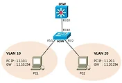 - L3 기능을 수행할 수 있는 스위치로 각 VLAN별로 GW를 설정하여 통신되도록 한다.